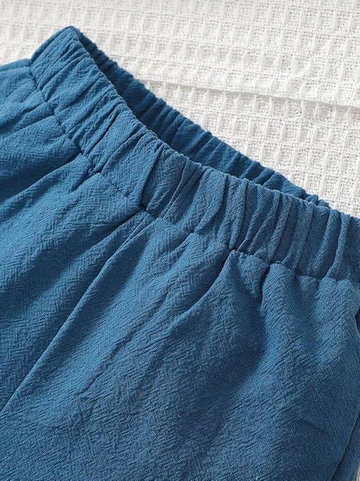 - Elegant Design: The plain shirt features a classic collar and down front, providing a timeless and versatile look. The matching shorts are designed with an elastic waistband for easy dressing and a comfortable fit.